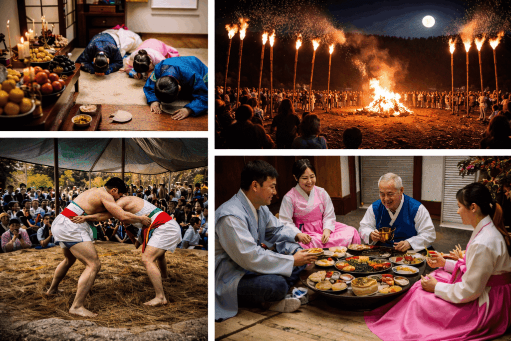 Korean festivals reflect family values, seasonal change, spirituality, gratitude, and community. Many traditional celebrations follow the lunar calendar.
