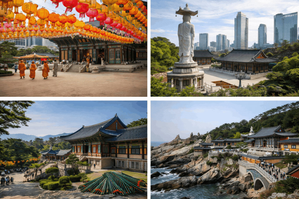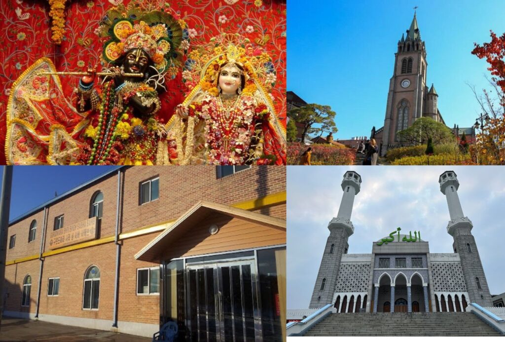 Korea’s spiritual landscape includes Buddhist temples, churches, masjids, Hindu temples, and Sikh places of worship, reflecting both heritage and multicultural communities.